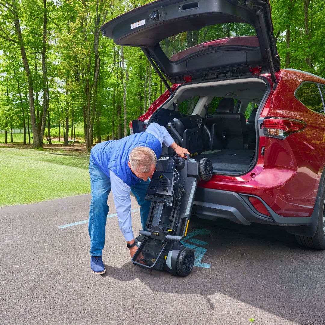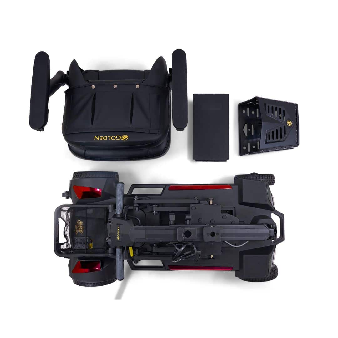 Pack your dreams and go on any adventure with the incredibly portable Buzzaround CarryOn HD Scooter. The ONLY lightweight scooter designed with the strength and power to accommodate up to a 400 lb. weight capacity. With a sporty blacked-out style, front and rear LED lighting, and optional color shrouds, this unique scooter not only looks great but offers excellent maneuverability and range.
