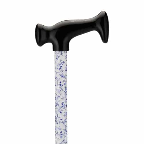 CANE T-GRIP White w/ Blue Flowers